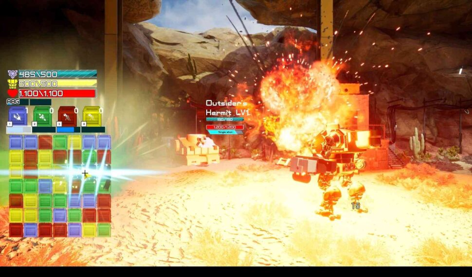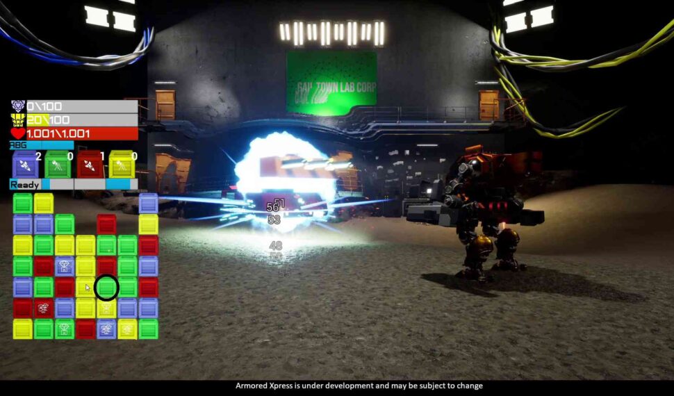 In combat Armored Xpress MECH uses energy from supply crates that are matched during play to power its weapons and systems. Weapons are available to fire at specific power levels with a maximum of 4 levels. You can strategically fire each weapon at will or wait until they are at their maximum level. This strategy allows you to reserve a weapon or unleash all the weapons at once for a truly devastating attack. Each supply crate matched with its corresponding color in groups of 3 fills the matching weapons power gauge. Supply crates matched with more then 3 of the same color generates a special care package crate. When broken these crates drastically boosts the corresponding weapons power gauge.