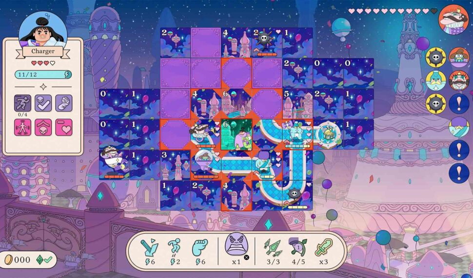 Choose your hero from six unique classes, each with their own playstyle and abilities, including: The Charger, a powerhouse who unleashes devastating attacks but must keep charging into hidden tiles to gain energy. The Shadow, who uses cunning items like Smoke Bombs and Sleep Darts to outwit and outmaneuver enemies. The Oracle, a master of perception magic who adds extra information to navigate the mazes with superior logic and teleportation. I want them to be easy to learn initially but increasing in complexity over time so they don’t get boring, I want them to be whimsical and funny, and I want them to be visually appealing and seamlessly produced.