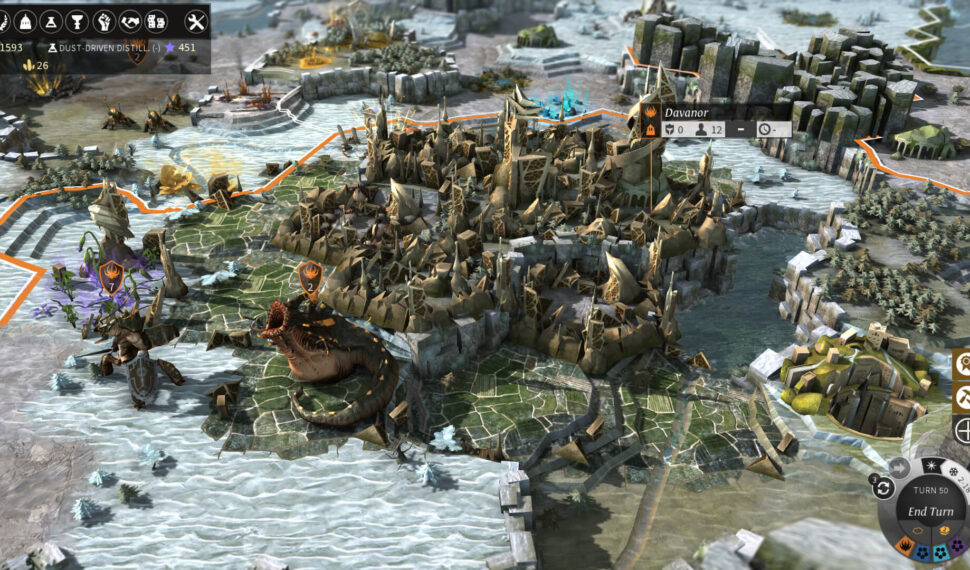 But beyond that, nothing is certain… Where will you go, what will you find, and how will you react? Will your trail be one of roses, or of blood? Lead one of eight civilizations each with a unique gameplay style and storyline. Survive through cold dark seasons that drive Auriga to its end. Will it also be yours? Experience an endless replayability with randomly generated worlds and quests. Set the size, shape, topography and more… to create your own world to discover. Conquer, build and develop villages into feared fortresses or wonderful cities. Assimilate powerful minor factions and use their special traits and units wisely. Hire, equip and train your heroes to become army leaders or city governors. Raise your civilization by finding mysterious artefacts and forgotten technologies. Evolve your civilization through the discovery of new advanced technologies. Collect Dust, luxuries and strategic resources tradable on the marketplace.