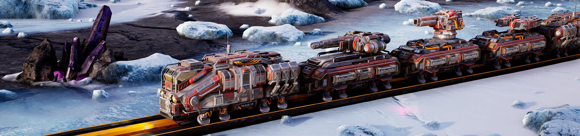 This tech can be installed on your armed trains, allowing you to customize each one and fulfill different roles in your strategic plans. A blend of artillery shooting and real time strategy. Control a fleet of artillery-trains. Ensuring a steady flow of resources requires logistical precision, even before contact with the enemy. You must try to disrupt the competition even as they do the same to you. Customize your trains to fulfill different roles on the mining fields. Some trains may haul minerals back to base, while others may unleash terrible new technologies upon their targets. Choose your path to victory; crush your competitors or out-mine them. A variety of extra-large maps spanning several dozen square kilometers, befitting an artillery battlefield. 4 distinct factions Horde Mode: Survive against a rising tide of enemies. Out-shoot the incoming horde, or mine enough Pentum before you get overrun!