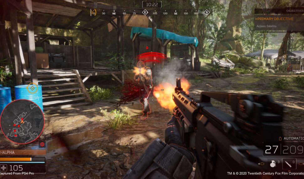 As a Fireteam member, wield a state-of-the-art arsenal, from pistols to assault rifles, shotguns, grenades and heavy weapons. As the Predator, hunt with deadly alien tech including the shoulder-mounted Plasma Caster, Combistick, Smart Disc, Wrist Blades, and more. Drop into several conflict zones in South America, treacherous, thick with ranging trees and sprawling undergrowth. Guerilla soldiers are well-camouflaged between guarding shanty hide-outs at the water’s edge. Whether a Fireteam moves as a unit or takes a strategic split approach to reach each objective, the rich setting offers a diverse environment to perfect your approach. For the Predator, the trees are perfect for using otherworldy skills, crawling up tree trunks and stealthing through branches to stalk prey with frightening speed.
