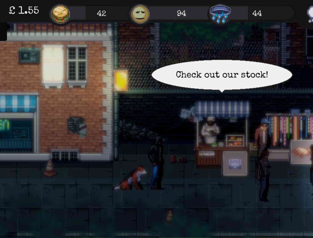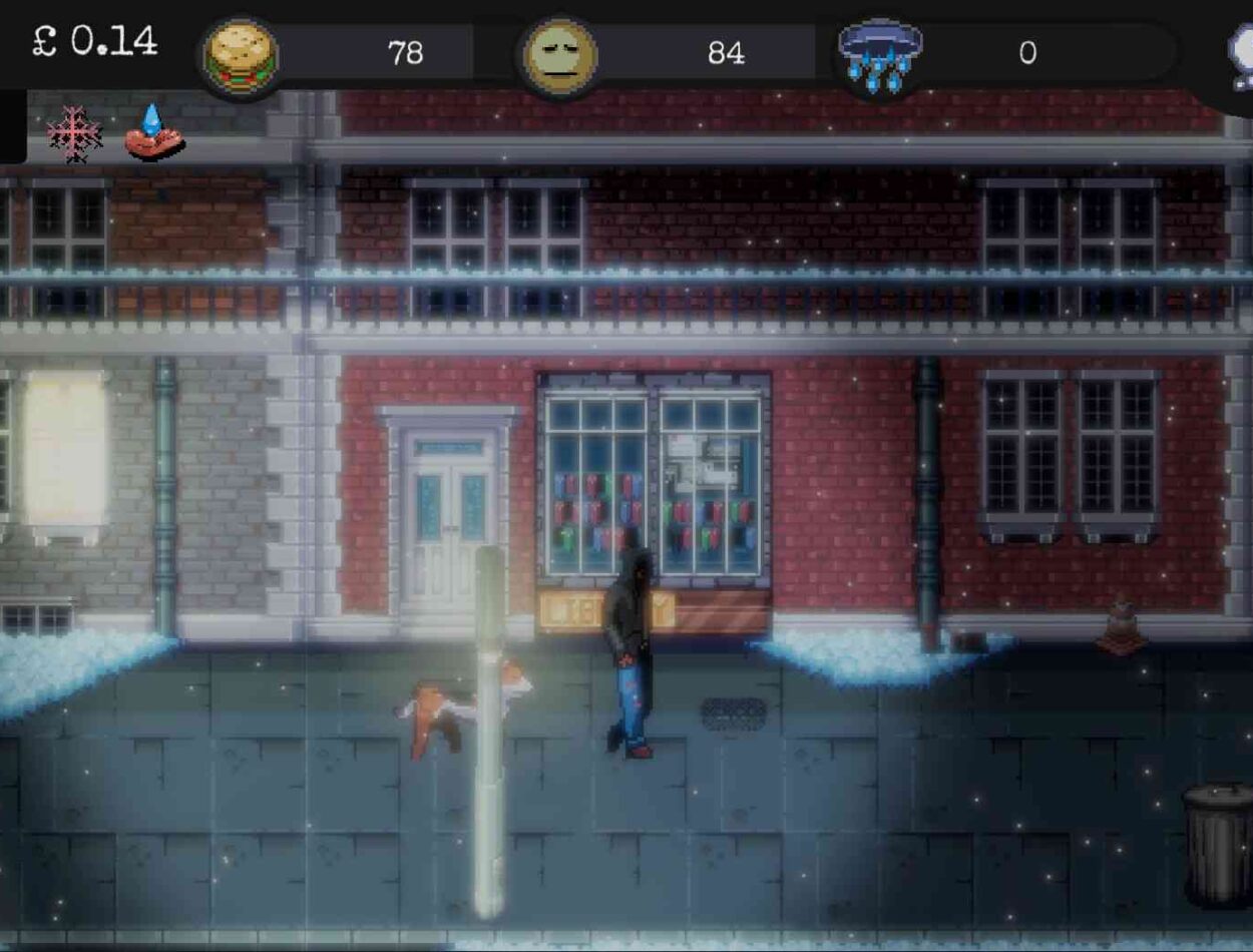 We take the subject very seriously and portray it as such. After over 7 years of research and hard work, 100s of updates and fan support, we bring you our tale of survival and isolation. Choose from 5 different characters each with their own background stories and maladies, then create your own story Find companions and find kindness. Build a reputation or even friendships with various characters including the other homeless and the police Build your inventory with food, survival tools, clothing and more… as well as unlocking new items for your next playthrough as you progress.