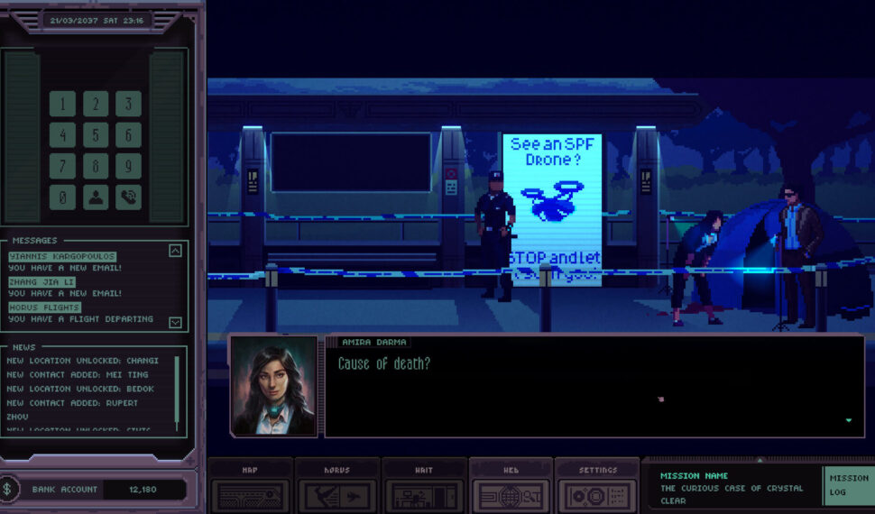 The encroaching murk of riverside London and the blinding lights of Shanghai. Explore over a hundred stunningly rendered environments from artist Ricardo Juchem and immerse yourself in the chaotic future of 2037.Travel the globe from your base in Singapore in search of leads, and talk with dozens of uniquely voiced characters each with their own mysterious agendas. The cases Amira takes on require smart thinking and intuition to beat – but what happens when the clues dry up? That’s when you’ll have to look beyond the game for answers. The mysteries of Chinatown Detective Agency require real world investigation, whether that’s an online search for an airport code or tracking down a mysterious quote. You’re not just playing a detective, you’re becoming one. In Chinatown Detective Agency, time is a precious resource. Use your time and money wisely to stay one step ahead, and avoid the looming threat of going broke. Every choice will affect the world around you and change Amira’s story for good. Can you save the city from the jaws of panic and pandemonium?