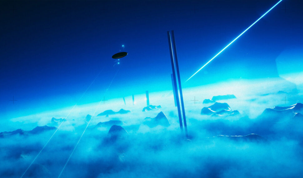 Ride thermal updrafts into boiling cloud formations, careen down hillsides and launch off mountain tops, all the time drifting toward the shining blue beam on the horizon. Atmospheric, diffused visuals are merged with otherworldly sound effects and a hypnotic electric guitar soundtrack. Pilot your craft on mankind’s first voyage outside the solar system, and go on an interplanetary journey across space and time.