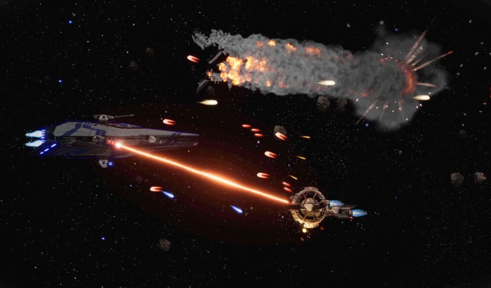 Players will team up to command one of the spaceships and liberate the planets. Cooperate with your friends up to 4, crew a spaceship and fight in differents places. Each player will have an unique rol in the game. Commander, Soldier, Medic and Technician. During the space battle each part of the spaceship could suffer damage, so the crew members should repair it before everything is lost. The Cantharis is a destroyer class destroyer used in the first war against the Corporation were the first Farlight Explorers colonists achieved to win the war destroying the Singularity Gate. Right now is an obsolete spaceship, however it has the best balance and the cost to produce it is really low.
