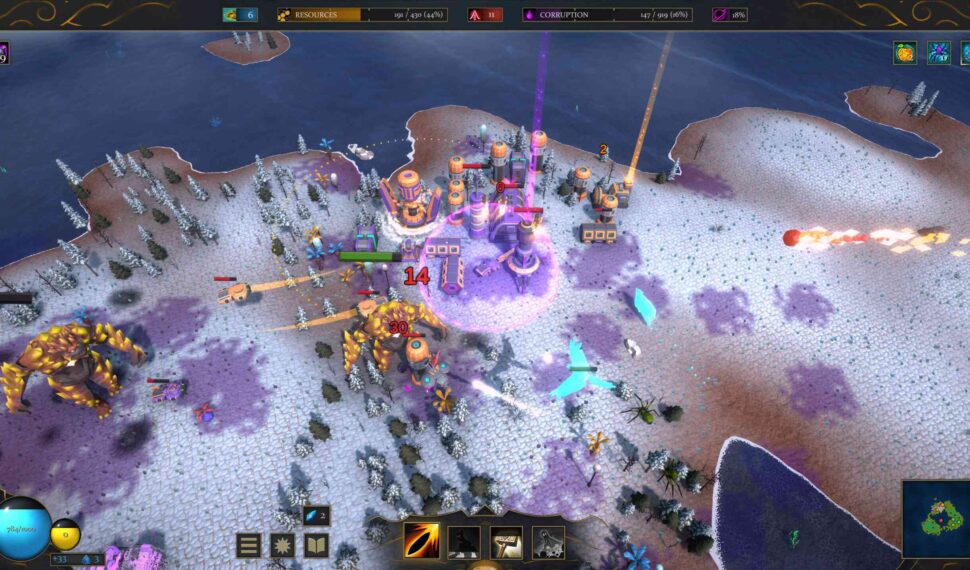 Meteor storm, Thunderstorm, and Fire Rain are three extremely potent destructive powers that let out your fury on the machines. Manage Corruption: Stop machines from propagating corruption by eliminating their terraformers or eliminating the corruption directly using a variety of spells and minions. You will lose if you allow things to spiral out of control! When the enemy’s resources run out, you win! Destroy the machines and hostile buildings. Boss Battles: Get ready for an incredible showdown as one of the machines’ leaders will emerge when all of their resources have been exhausted! Harvest as much bounty as you can; the less corruption your planet has endured, the more bounty awaits you!