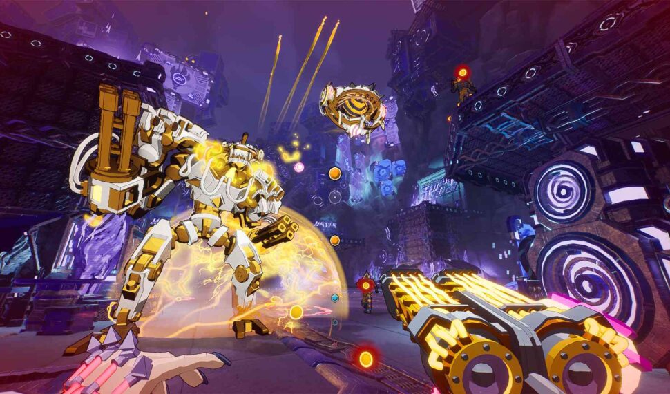 Immerse yourself in our art style and vibrant surroundings that react to the music. Shoot to the beat of your own soundtrack and customise your experience with our Custom Music Importer. Simply upload your music to generate a custom beatmap and play along to your own music in any of our maps. The game supports MP3s, WAVs, FLACs and OGGs. Use the Double Barrel Shotgun, Railgun, Rocket Launcher and Plasma Rifle to hit the hordes of troopers headed your way and deal out different levels of damage. Welcome to the vibrant city of ‘Mubel’ where the omni-present ‘Beat’ means everything and music is used as a means of control.