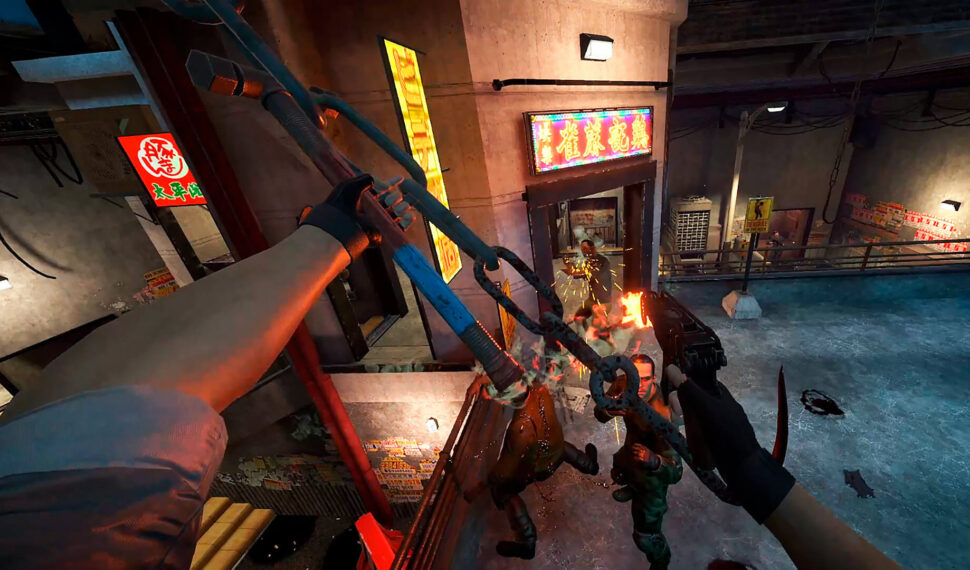 Brutal physics sandbox VR game with realistic enemy interactions, gore and dismemberment, slow motion abilities, survival modes, lots of guns and cinematic environment destruction.