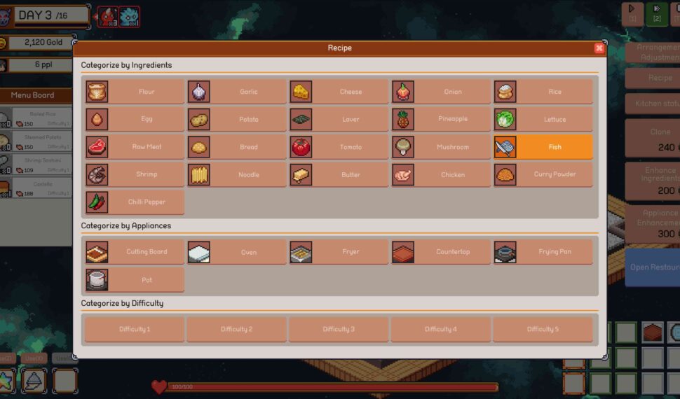 The way that appliances and materials are arranged in the kitchen affects cooking efficiency significantly. To create the best cooking pathways, always monitor your cooking process. Another important consideration is where the finished meals are placed. Arrange your dishes sensibly, taking into account the harmony between them and your cooking routes. Upgrade your ingredients, appliances, and other items in the kitchen with your gold. Your cooking efficiency and speed will rise as you advance. Making the best possible construction is essential, so make wise choices! Every character has certain qualities. Plan your menu, improve your build, and come up with a plan that fits your selected character because some surroundings work better for the characters than others.