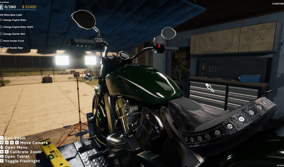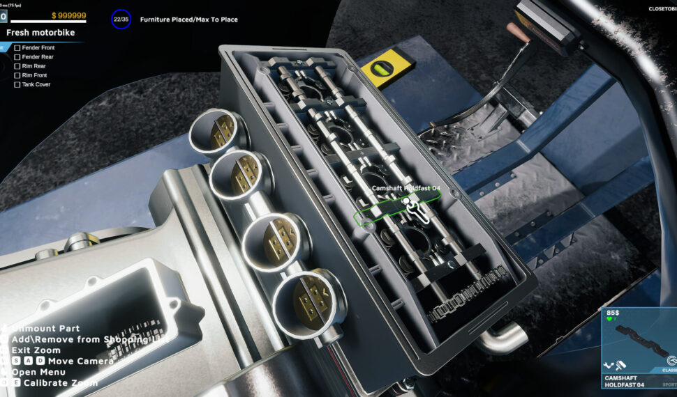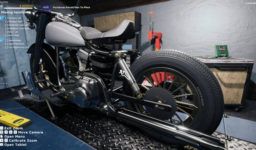 Choose between various available garages and furnish them. Check how your motorbikes work on test tracks. Search for special/custom parts in the junkyard location. Discover the shop with parts, various devices, and furniture. Customize parts by yourself by painting or water transfer printing.