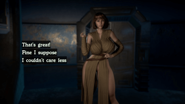 In this game, you play as a legendary male warrior travelling the galaxy; you encounter a young woman who hunts you down in order to have you be her mentor. As you train her… will she keep her strong values and remain headstrong or fall to the darkness like you. The game is a trainer with free roam elements. This means that the goal of the game is to train Asmodea. There are multiple missions, planets and scenes to encounter with other characters.