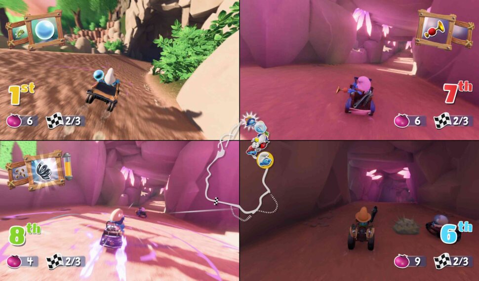 - Each Smurf has its own kart and a very handy special item to help you breeze past your opponents.