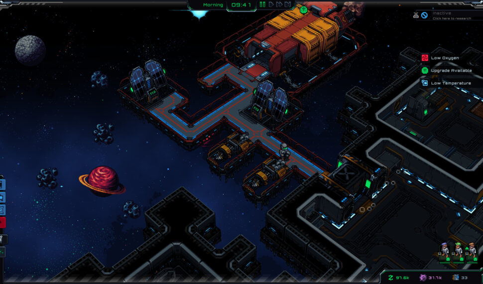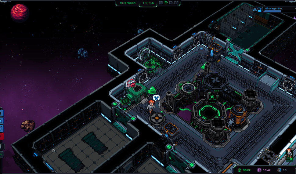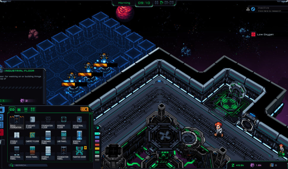 Colonists have needs, like hunger and thirst. Build farms and grow crops for food. Place heaters to prevent hypothermia. Construct med bays and assign doctors to treat wounds, cure diseases, and replace limbs. Customize your station with unique walling, floors, furniture, and tons of weird and wonderful decorations and objects. Repaint objects to achieve your space station interior design dreams! Place cheerful paintings to remind the colonists how friendly and relatable you are, and motivational posters to let them know how much you value their productivity. Design fancy kitchens, luxurious bedrooms, casinos, and industrial docking bays. Provide power by connecting machines with wires. Prepare against blackouts by creating separate or redundant grids for your vital machines. Use pipes and water recyclers to convert dirty farm water into clean, drinkable water. Establish separate atmospheres with the help of vents and air ducts.