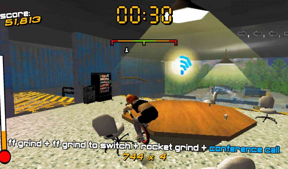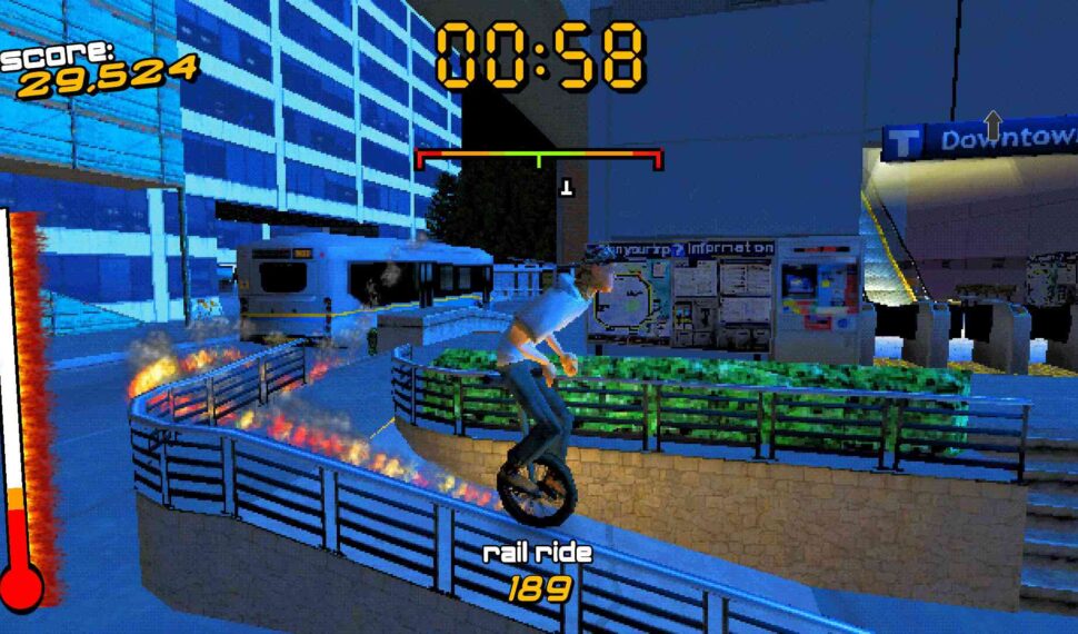 So far, I really like this! I’ve played previous versions of this game over the years, but I’m only a few levels in. Excellent fashion sense, enjoyable music—I really enjoy the vaporwave stuff—and a stimulating learning curve. Of course, this reminds me of THPS, but unlike skateboards, unicycles are not controlled! A video game with a unicycle should depict that! And this is where it is. It’s cool that you have to work up to a degree of mastery in order to move forward and backward. It takes some practice.
