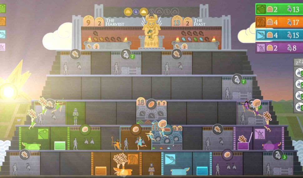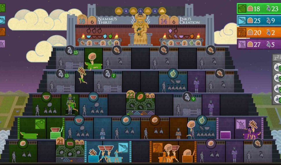A Worker Placement Video Game! Sumer takes the board game mechanic of worker placement to a new level. Each day, you and your competitors will awaken at dawn to begin your worship. Run and jump around the ziggurat to place your workers so they’ll collect resources. You only have 2 workers, so you better figure out your strategy, move fast, and claim workshops before your friends beat you to it! Real-time Dynamic Auctions! Whoever is willing to sacrifice the most goats gets Inanna’s blessing! The auction is simple — just move left or right to change your bid in real time. Each auction is a mind game of bluffing and bravado, and you never know an item’s real price until time is up! Trick your opponents into overpaying for their bids while you snag good bargains for your own!