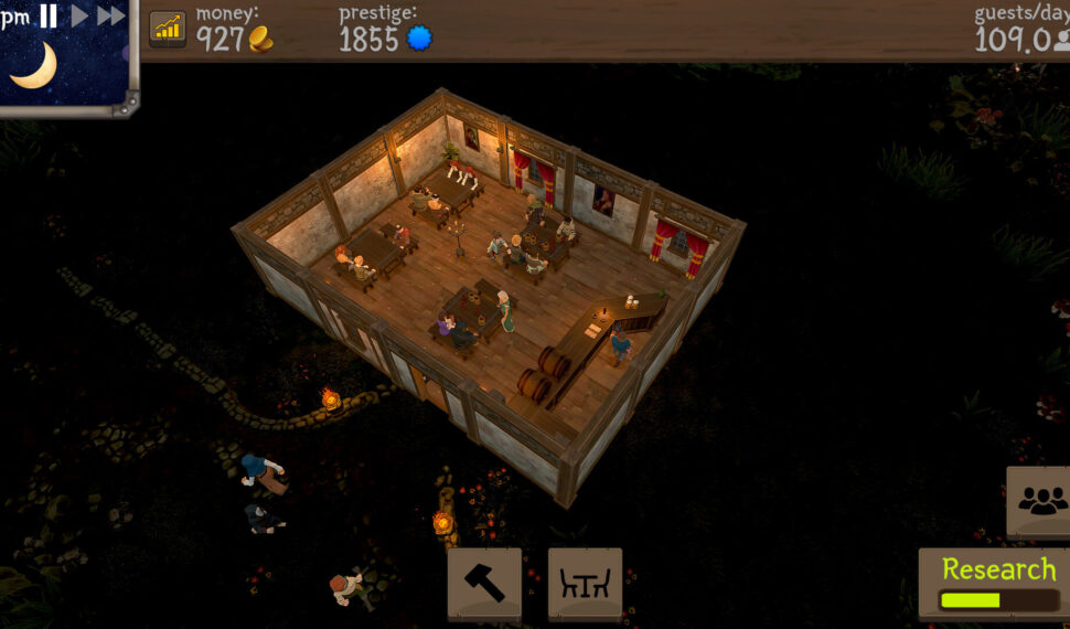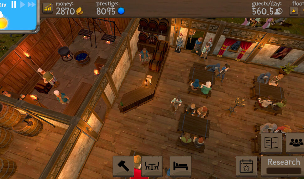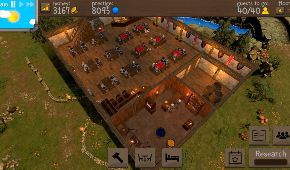 At the beginning there will not be enough gold to buy the best quality furniture but as your business grows so will the tavern! As a cherry on top, make sure to think of an amazing name for it! In order to attract customers you will need to have enough seats and tables with a light source close by. The surrounding area also needs to look beautiful and decorations will help with that. At one point there will be a lot of guests coming in and it is important that your staff can serve everyone before they leave angry from waiting too long. In order to do that you will have to design the space so there is an efficient way for your employees to walk in an optimized route.