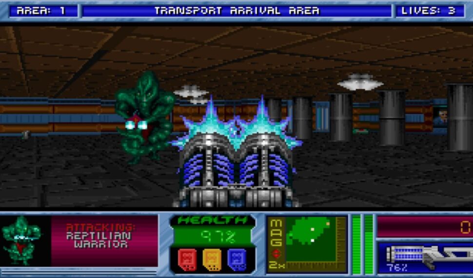 The Apogee Throwback Pack is a collection of four classic Apogee Software titles all in one kick ass package. Blast your way across the galaxy as British Special Agent Blake Stone in “Aliens of Gold” and “Planet Strike”, then take on an ancient evil menace as the H.U.N.T in “Rise of the Triad”. Many players wondered how Apogee would follow the success of Wolfenstein 3D in 1992. The answer was “Blake Stone: Aliens of Gold”! Where Wolf3D took you into the past; thrust into a world at war – Blake rockets you into the future where a sinister madman, Dr. Pyrus Goldfire, is using genetics to create an army of bizarre creatures and wage war on Earth.